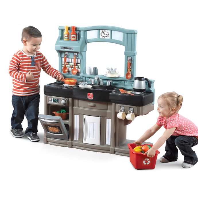 Step2 s kids play kitchen sets deliver a variety of different pretend play options like diner seating a market counter and even grills.