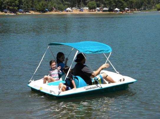 Perfect for years of trouble free family fun in the sun this sun dolphin pedal boat boasts a rugged uv stabilized fortiflex high density polyethylene deck and hull and accommodates up to 5 adventure seekers at a time with up to 3 pedaling simultaneously.